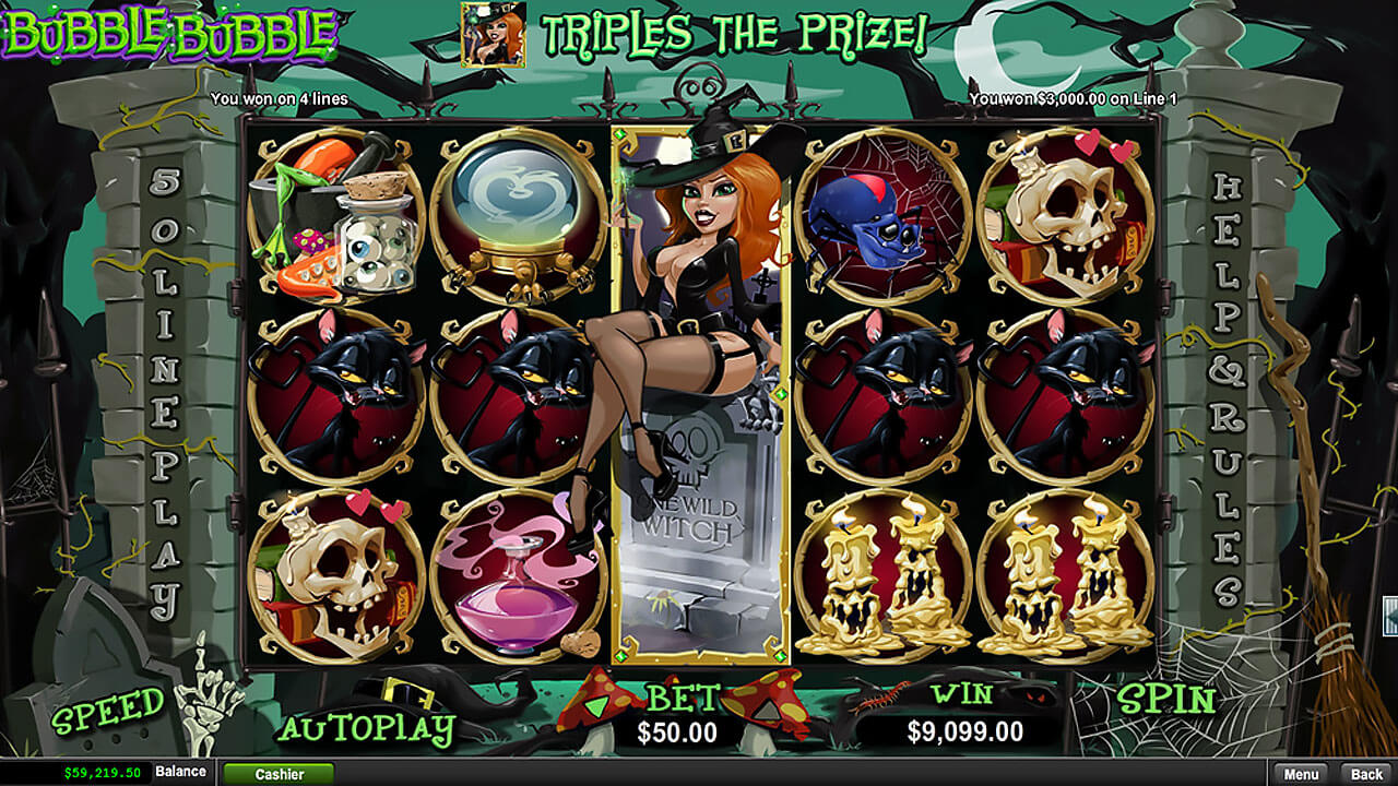 万圣节就在这款诡谲神秘的5x3,50线超高波动性老虎机游戏里! 散布的锅炉会触发三个其中一个的大型特色游戏.快来触发魔幻泡泡神秘奖金!