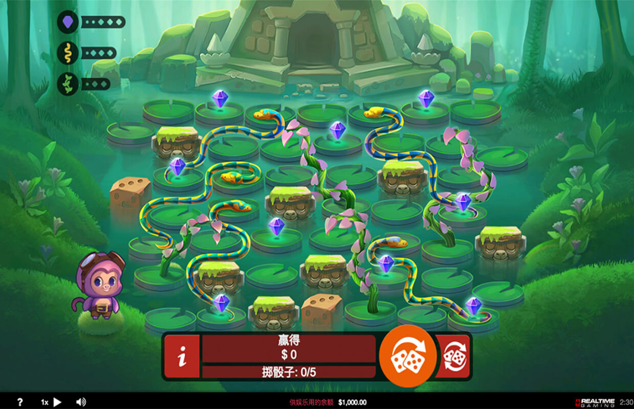 加入奪寶小靈猴的探險,去尋找寺廟和夢寐以求的水晶香蕉,並對抗邪惡的美洲豹利奧波德和他的毒蛇軍團。這款低波動性老虎機每次投注可以滾動5次骰子,以幫助我們的英雄完成他的征程。不過要記住,當降落在蛇的頭上時,會讓奪寶小靈猴遠離神廟,而在藤蔓上降落會使他更接近神廟。現在就去尋找那隻神奇的水晶香蕉吧!