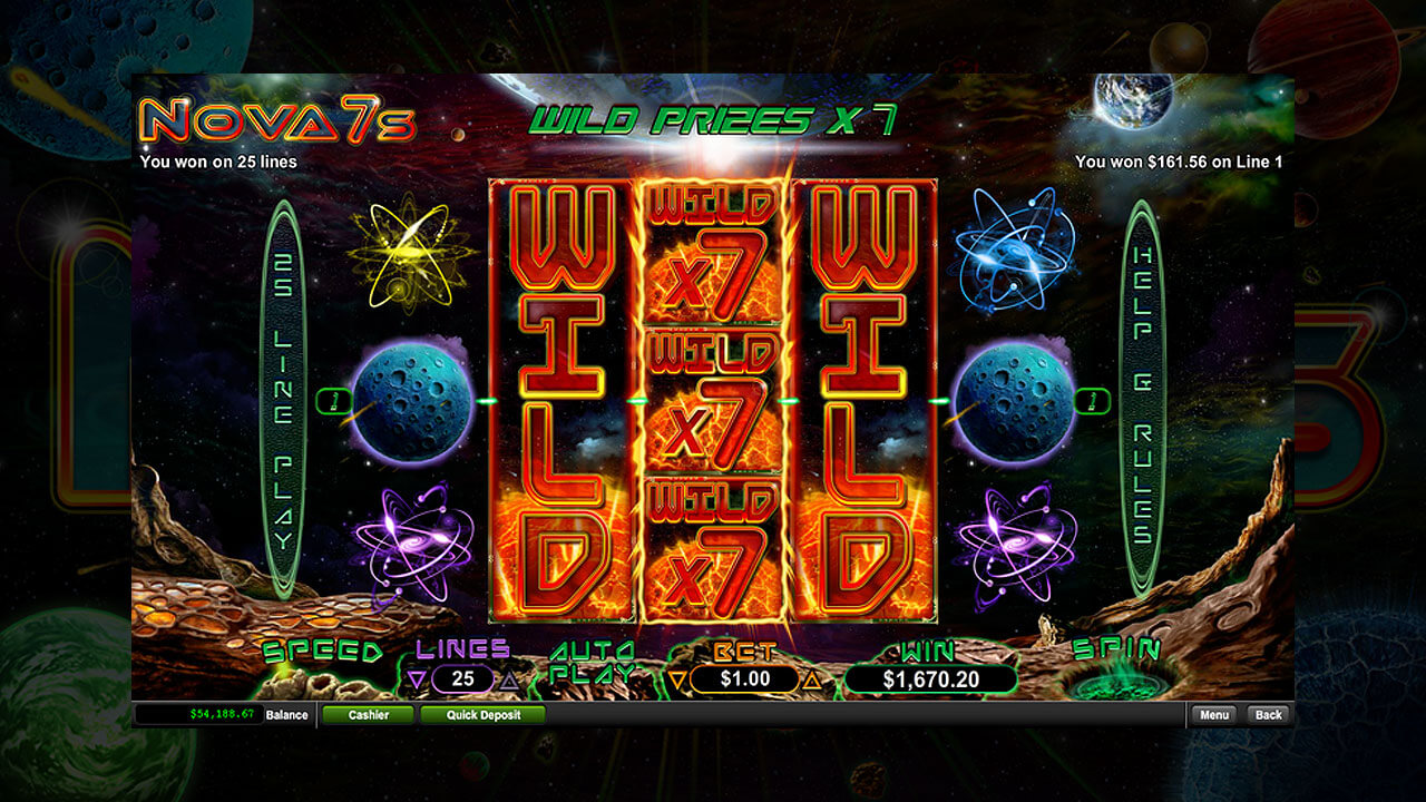 此特殊的老虎機遊戲會給你一個不同與以往的體驗! 免費遊戲會由散佈的藍色7觸發,且可贏得4個不同的特色遊戲.特色遊戲會從新星7開始,一直到令人瘋狂的超超新星極品功能。